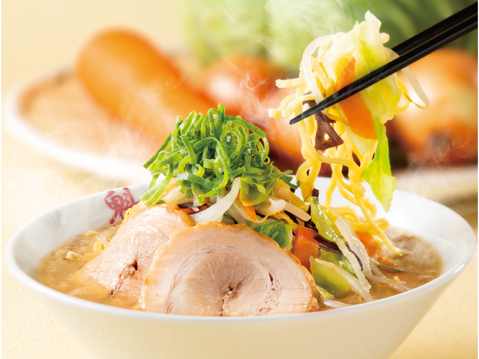 春にぴったりの本格派「野菜たっぷりタンメン」を、2026年3月25日(水)より期間限定で販売開始いたします。 通常サイズでも半日分、爆盛りなら1日分以上の野菜が摂取でき、健康管理が気になる春にぴったりの一杯です。 今年はボリュームたっぷりの野菜にきくらげを加え、ボディ感ある旨塩スープを組み合わせました。 ふわっと広がる胡麻の香りとにんにくを効かせた本格派の味わいに仕上げ、さらにレベルアップしています。 ちぢれ麺がスープによく絡み、とろとろの豚バラチャーシューがコクをプラス。 食べ応え抜群の「野菜たっぷりタンメン」、しっかり食べて整える春の一杯としてお楽しみください。